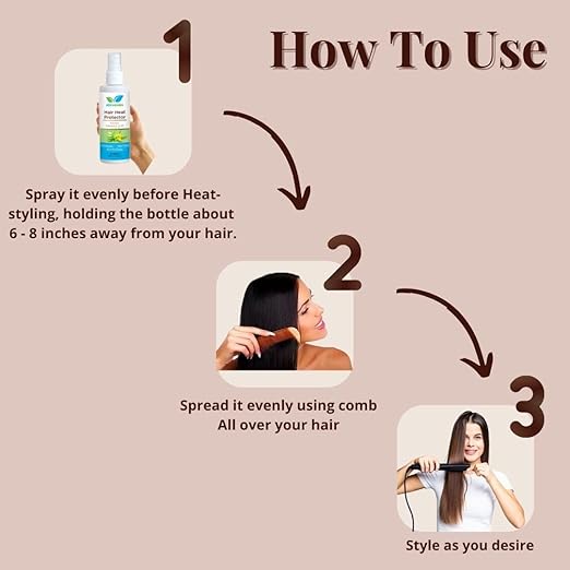 - Heat Protection For Hair: This Hair Heat Protections(Protector) Spray Protects Hair From Heat Damage Casued By Hair Styling Tools Like Hair Straightener, Curler and Dryer Plus It Also Protects From Sun Damage. It Works As pre and Post Styler. It Also Controls Frizz With 100% Smoother Hair That Lasts Up To 03 Days.