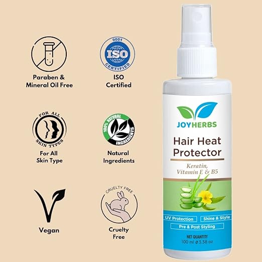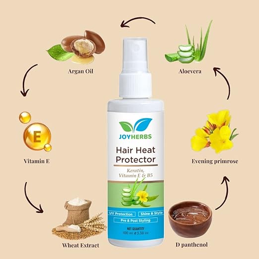 JOYHERBS Heat Protection Spray For Hair Straightening For Women (100 ml) Keratin and Argan Oil | Controls Frizz, and Breakage | 100% Vegan and Natural – Paraben and Sulfate Free