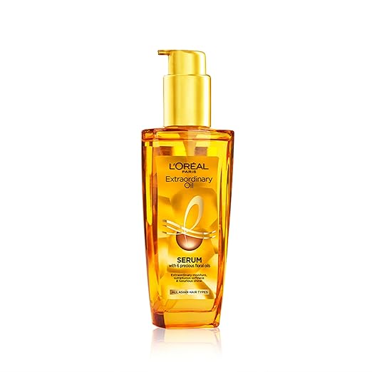 L’Oreal Paris Serum, Protection and Shine, For Dry, Flyaway & Frizzy Hair, With 6 Rare Flower Oils, Extraordinary Oil, 100ml