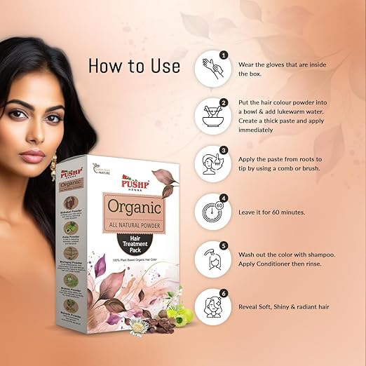 Pushp Henna Organic Hair Treatment Pack, All Natural Powder, 100% Plant Based Organic Hair Mask | Goodness of Amla,Cassia,Bhringraj,Baheda,Shikakai,Brahmi | For Man and Women