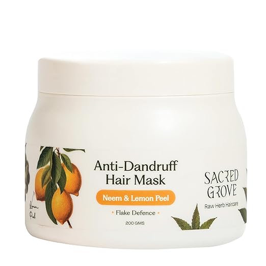 Sacred Grove Anti Dandruff Hair Mask with Neem & Lemon Peel | Pre-Shampoo Scalp Treatment for Itchy, Flaky Scalp | Deep Conditioner Hair Mask for Dry, Damaged Hair | For Women & Men | 200ml