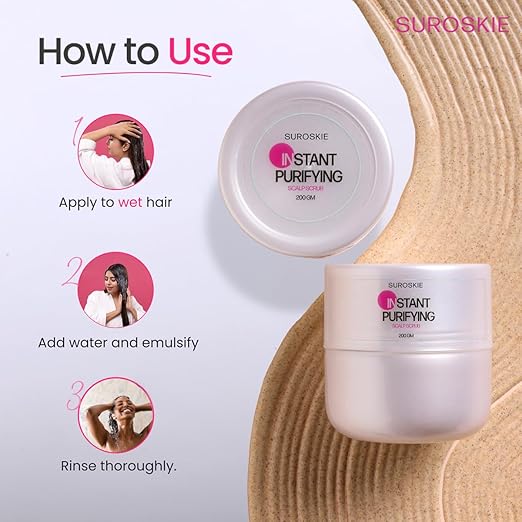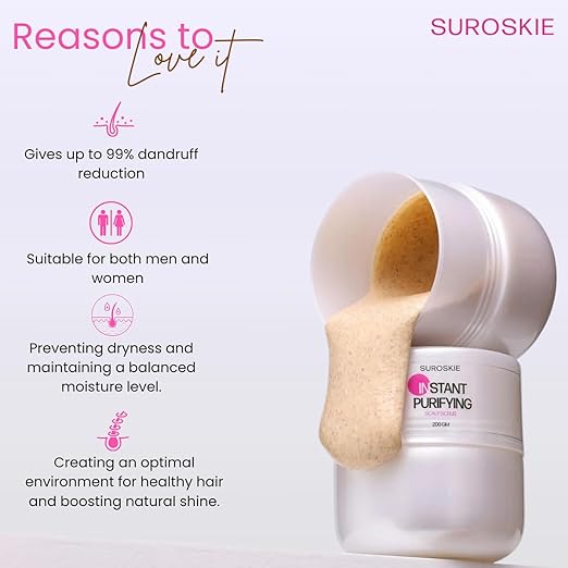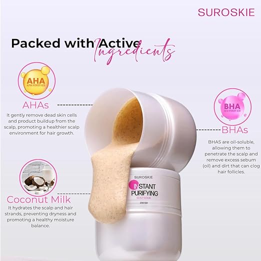 SUROSKIE Instant Purifying Scalp Scrub 200gm | With AHA+BHA & Coconut Oil | Get Up To 99% Dandruff Reduction | For Deep cleanse, Soothe & Exfloiate Scalp | Hair Management | Scalp For Men & Women