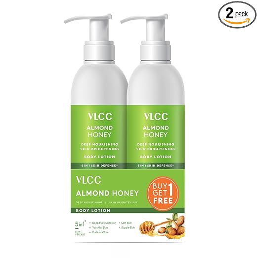 VLCC Almond Honey Deep Nourishing & Skin Brightening Body Lotion – 350ml + 350ml | Buy One Get One | Deep Nourishment, Glowing & Youthful Skin | With Almond Oil, Honey, Cocoa Butter & Aloe Vera.