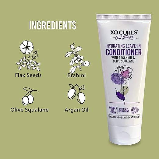 XO Curls Hydrating Leave In Conditioner With Argan Oil And Olive Squalane; A Curly Hair Therapy Range That Gives Women & Men Frizz-Free, Soft Natural Curls,1 Count